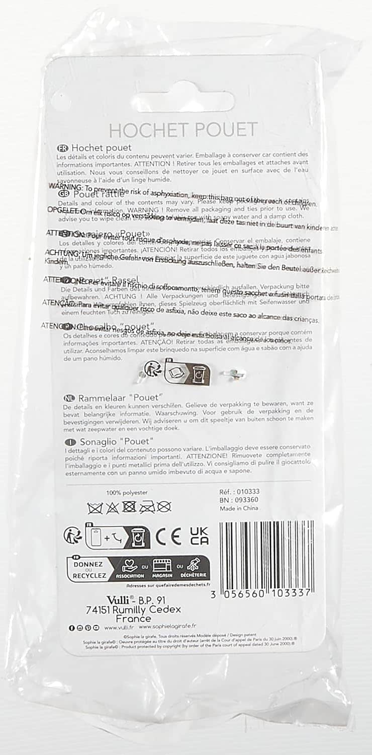 La sécurité de votre enfant est primordiale. Ce hochet est fabriqué avec des matériaux de haute qualité, garantissant qu’il résistera non seulement au temps, mais aussi aux nombreuses heures de jeu. Il est lavable en surface, ce qui facilite grandement son entretien.