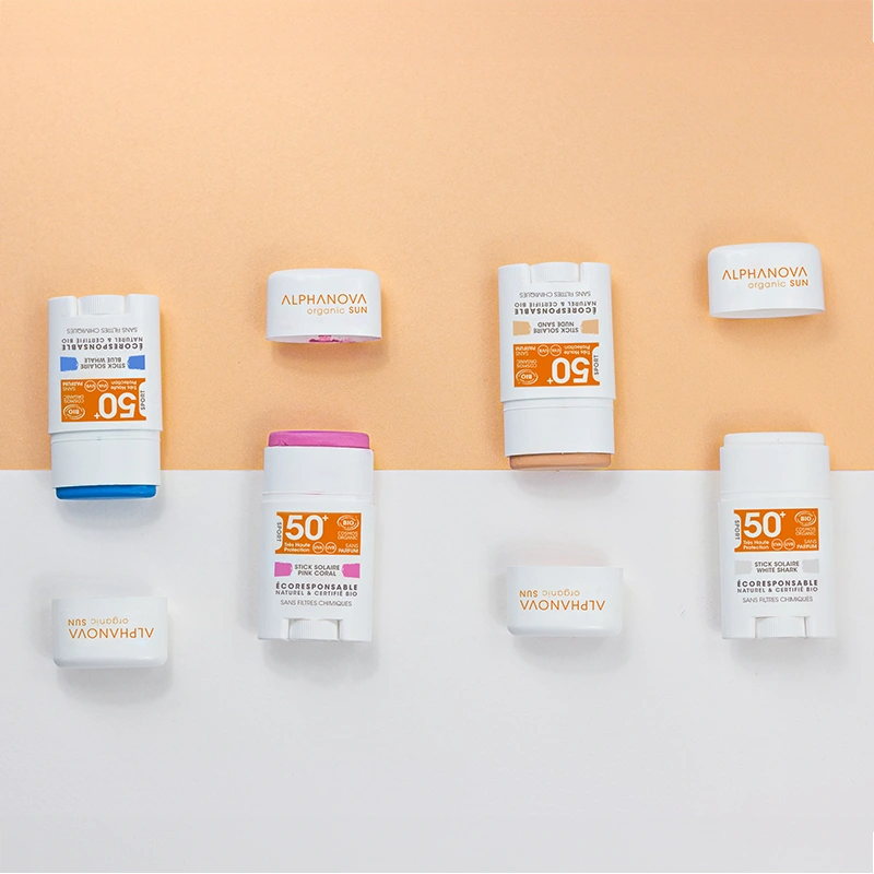 Découvrez les nouveaux sticks solaires colorés ALPHANOVA SUN®. Une protection solaire fun et stylée, sans filtres chimiques assurée par des filtres minéraux écoresponsables et non toxique pour le milieu marin.
