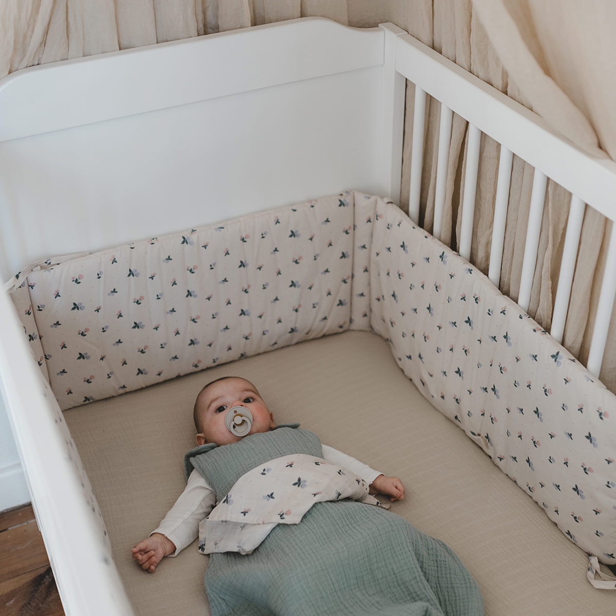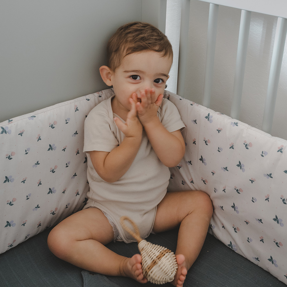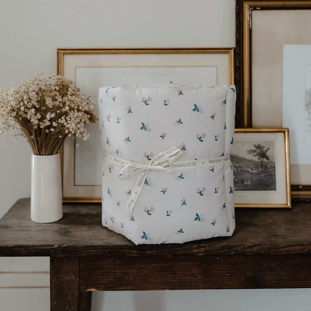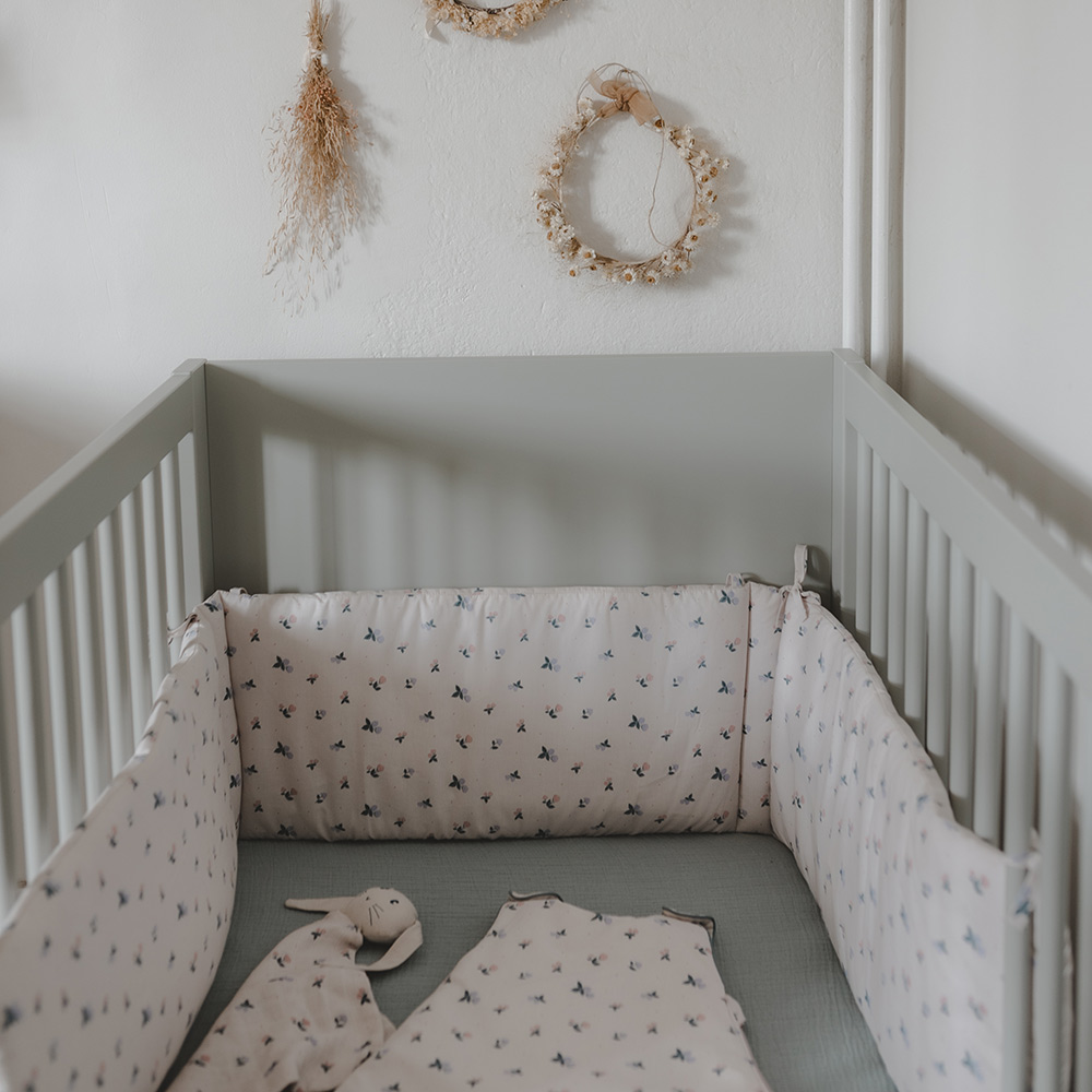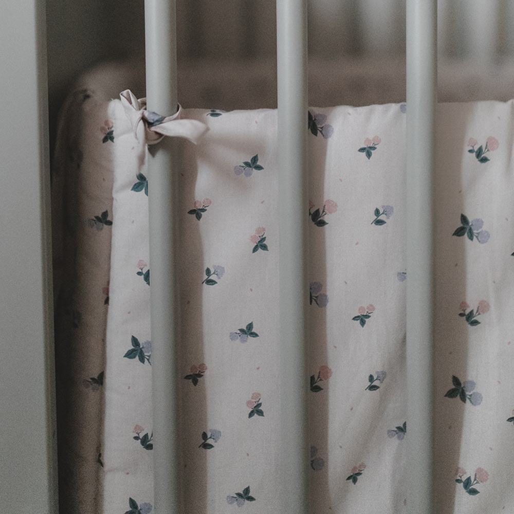 Le tour de lit Batignolles est un ravissant accessoire dont le motif d’hortensias apportera une belle touche bucolique dans la chambre de votre bébé.