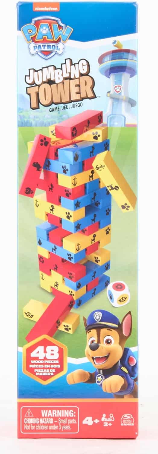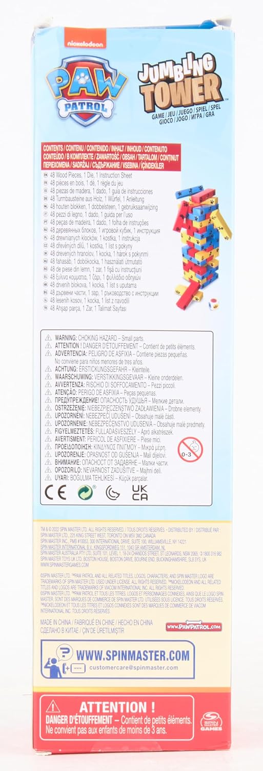 Que ce soit pour un anniversaire, Noël, ou juste pour faire plaisir, la Tour Jenga Pat’Patrouille est le cadeau parfait. Ralliez les petits autour d’un jeu qui combine le meilleur de l’univers Pat’Patrouille avec un classique intemporel des jeux de société. Non seulement ils s’amuseront, mais vos enfants en ressortiront grandis, développant des compétences importantes tout en jouant.