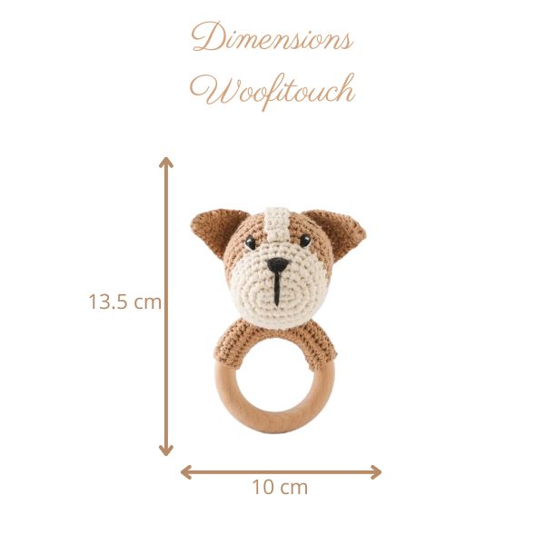 Vous êtes à la recherche du jouet parfait pour votre bout de chou, celui qui mêle utilité, tendresse et un petit côté adorable qui fera fondre tout le monde à la première vue ? Ne cherchez plus, on a exactement ce qu’il vous faut: Woofitouch, le hochet en crochet et bois avec un adorable chien beige en crochet, prêt à devenir le meilleur ami de bébé. Et attention, ce n’est pas juste un hochet ! Grâce à son anneau en bois naturel, Woofitouch est également un allié redoutable contre les poussées dentaires. Préparez-vous, vous allez bientôt vous demander comment vous avez fait sans lui.
